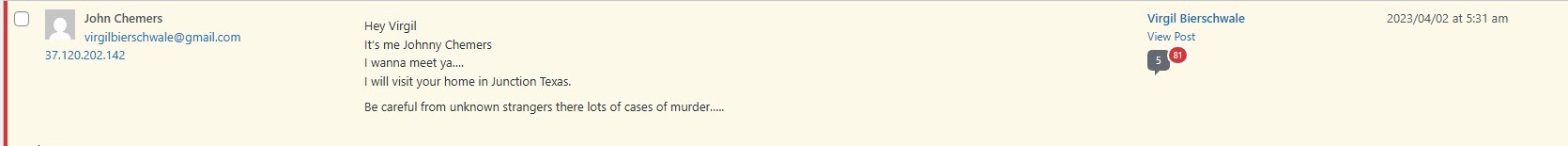 Notice how he has used multiple email addresses of mine that he apparently got from my resume and websites I’ve created to try and find work?